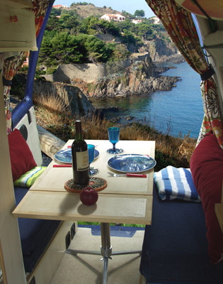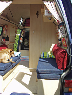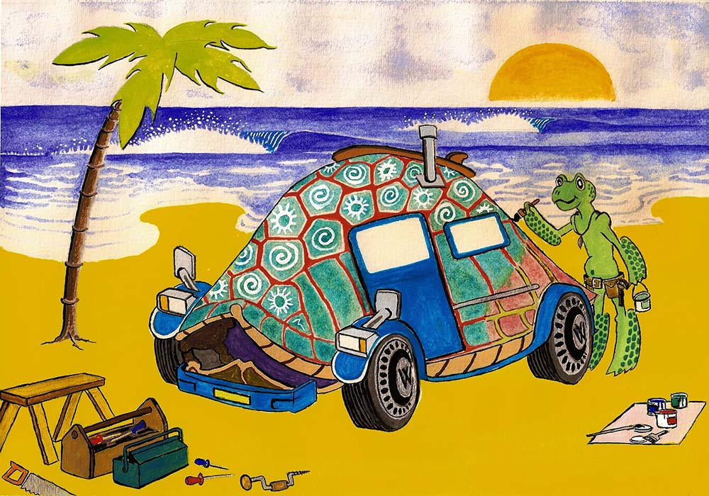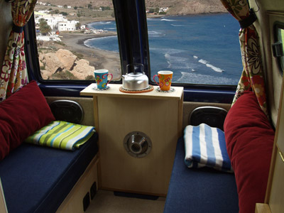 diy turtle doublebed curtain beach view Gouache-van lazy days
